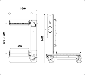 Seitwärts einstellbare Hebearme für Radgrößen Ø 270-1300 mm